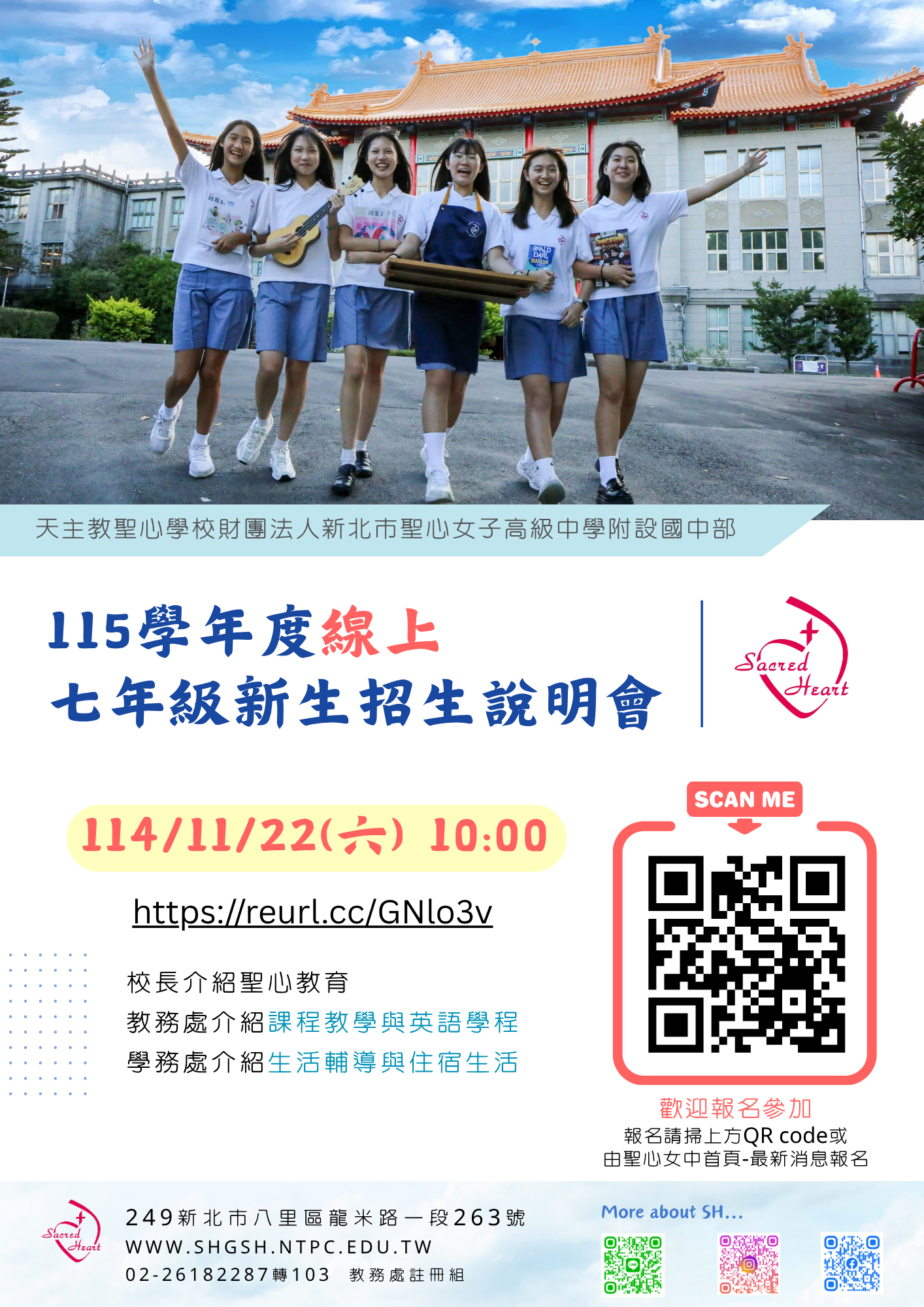 聖心女中首頁www.shgsh.ntpc.edu.tw—最新消息--115學年度七年級新生線上招生說明會